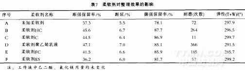從耐磨性試驗(yàn)來看.用聚乙烯乳液作柔軟劑.耐曲磨性最好。