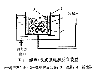 鐵炭微電解俗稱(chēng)“鐵床’夕,國(guó)際上稱(chēng)為“CMRO”。我國(guó)開(kāi)始研究微電解法處理印染廢水技術(shù)始于20世紀(jì)80年代。近年來(lái),國(guó)內(nèi)外己有相關(guān)微電解塔改進(jìn)性實(shí)驗(yàn)及工程實(shí)踐的報(bào)道。目前對(duì)微電解法的研究主要集中在工藝操作條件,如pH值、反應(yīng)時(shí)間、填料比等對(duì)不同種類(lèi)染料廢水的處理效果的影響上[l一2]。20世紀(jì)80年代末期發(fā)展起來(lái)的超聲波技術(shù),是一種極具產(chǎn)業(yè)前景的深度氧化技術(shù)(advancedoxidationproeess,Aop),利用超聲波降解水中的化學(xué)污染物,尤其是難降解的有機(jī)污染物,是近年發(fā)展起來(lái)的一項(xiàng)新型水處理技術(shù)[3]。但此法不是很經(jīng)濟(jì)。為提高其降解效率,降低運(yùn)行費(fèi)用,一些學(xué)者相繼開(kāi)發(fā)了超聲波與其它物理化學(xué)方法協(xié)同作用的新處理工藝。為了探索超聲存在條件下鐵炭微電解對(duì)印染廢水的降解效果,通過(guò)對(duì)比實(shí)驗(yàn)考察得出在處理印染廢水的過(guò)程中,超聲對(duì)鐵炭微電解具有顯著的協(xié)同降解效應(yīng),能顯著提高對(duì)廢水COD的去除率。