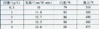 表4精練漂白劑用量對練漂效果的影響