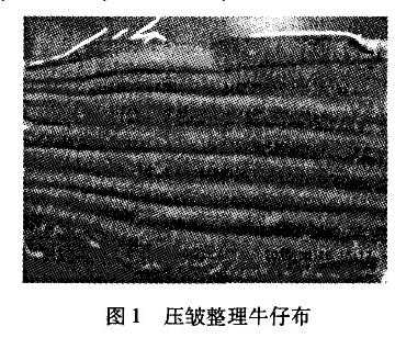 牛仔壓皺整理是近年來較流行的一種整理工藝,助劑廠商也推出了很多相關(guān)助劑,其中牛仔壓皺樹脂就是主要的一類。牛仔壓皺樹脂作用原理與免燙整理類似,通過活性基團(tuán)與纖維素長(zhǎng)鏈分子中的羥基發(fā)生共價(jià)交聯(lián)反應(yīng),將纖維素纖維相鄰的分子鏈聯(lián)結(jié)起來,限制其之間的相對(duì)滑動(dòng),從而保證牛仔布上的褶皺不會(huì)消失,即具有形態(tài)記憶功能。水洗廠一般要求在130~150℃條件下加工(免燙加工一般在150~170℃),因此要求壓皺樹脂的活性要高,整理后一般進(jìn)行一道水洗,即可除去大部分甲醛。試驗(yàn)對(duì)牛仔壓皺樹脂整理的處方進(jìn)行了優(yōu)化,并評(píng)定了使用效果。