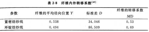付[49]還測量并計(jì)算了緊密紡紗線和環(huán)錠紗中纖維的平均徑向位置和內(nèi)外轉(zhuǎn)移系數(shù)(MD),結(jié)果如表2—8所示??梢钥闯觯o密紡紗線的纖維內(nèi)外轉(zhuǎn)移系數(shù)為53%,而環(huán)錠紗的纖維內(nèi)外轉(zhuǎn)移系數(shù)為69%。