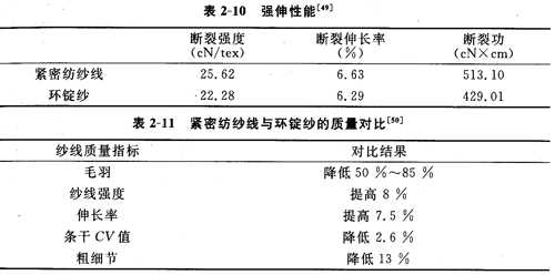 表2—10給出了緊密紡紗線和環(huán)錠紗的強(qiáng)伸性能。