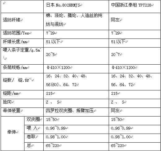 表9-3-1噴氣紡紗機(jī)的技術(shù)特征