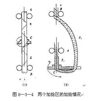 圖8—3—4 兩個加捻區(qū)的加捻情況