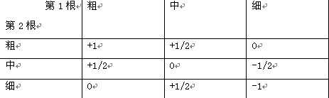 表中:0為中(不粗不細),+1為粗,-1為細,+1/2為較粗,-1/2為較細。