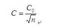 設有n根棉條相并合,并且它們5米長度片段平均重量及不勻率都相等。C為并合后棉條的不勻率,C0為并合前各根棉條的不勻率,利用數(shù)理統(tǒng)計的方法可進行推證出兩者之間的關系為: