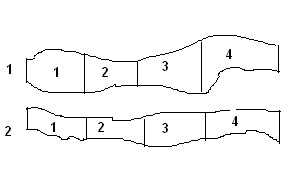 以兩根棉條(如圖)并合為例,說明并合的均勻作用。每根棉條分為