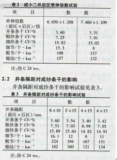 2.1.1減小頭并前區(qū)牽伸倍數(shù)試驗(yàn)