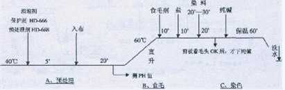 ②預(yù)處理與食毛、與染色一浴法進(jìn)行