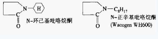 環(huán)保型染色載體是20世紀90年代開始研發(fā)的,要求無毒、無氣味、易生物降解,在較低溫度下保持液狀,易乳化,乳液貯存穩(wěn)定性好,合成容易,價格便宜,載體能力較強,載體染色物不降低日曬牢度和色光,不損傷纖維,殘留在織物上易洗除.118J要達到上述所有要求是非常困難的,被研究過的化學品有近百種,至今還沒有找到十分理想的載體,不是染深色效果不如冬青油,就是價格較貴,到目前為止,載體效果相對優(yōu)異的是N一環(huán)己基吡咯烷酮,其次是N一一正辛基吡咯烷酮,價格都很貴,它們的分子結(jié)構式如下: