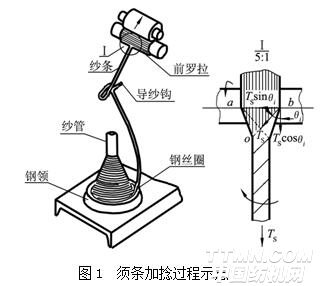 按毛羽的形成機理,環(huán)錠紡紗線的毛羽分為加捻毛羽和過程毛羽;加捻毛羽主要是須條在加捻過程中形成的。
