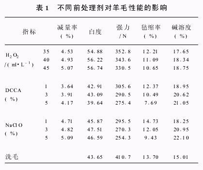 張瑞萍蔡再生(1東華大學(xué)化學(xué)化工學(xué)院,上海 226007;2南通大學(xué)化學(xué)化工學(xué)院,江蘇南通 226019) 摘要:文章探討了不同前處理劑、蛋白酶和TG酶對羊毛織物抗氈縮性能及對纖維損傷和織物強力等的影響。結(jié)果表明:通過TG酶的作用,可以提高織物的強力,降低纖維的堿溶度,使羊毛纖維的損傷得到補救;采用氧化前處理與蛋白酶及TG酶三者結(jié)合新工藝,可以在保證纖維損傷小的前提下,提高織物的抗氈縮性。關(guān)鍵詞:羊毛織物;蛋白酶;TG酶;防氈縮整理中圖分類號:TS19229 文獻(xiàn)標(biāo)識碼:A 文章編號:10031456(2007)01001004 近幾年,由于環(huán)境問題日益為人們所重視,尋找合適的酶制劑代替氯化工藝已成為羊毛防氈縮研究的熱點。用蛋白酶對羊毛進(jìn)行減量處理,進(jìn)而使羊毛織物達(dá)到防氈縮目的的研究國內(nèi)外均見報道。但由于蛋白酶對羊毛處理的不均勻性,造成了羊毛纖維較大的損傷,限制了其工業(yè)化應(yīng)用。本研究選用一種新型生物酶,與傳統(tǒng)的氧化、蛋白酶處理結(jié)合共同處理羊毛織物,使蛋白質(zhì)改性,達(dá)到防氈縮的同時,還可減少織物強力損失。1 實驗部分11 實驗材料及主要化學(xué)藥品純毛織物,釋氯劑DCCA,二氯異氰尿酸鈉(工業(yè)用),次氯酸鈉(分析純),雙氧水30%(分析純),水玻璃(工業(yè)品),蛋白酶(工業(yè)品),TG酶(日本)。12 前處理H2O2處理條件:溫度50℃,浴比1∶20,時間60min,JFC適量;DCCA處理條件:溫度25℃,浴比1∶20,時間60min,JFC適量,pH值40;NaClO處理條件:溫度25℃,浴比1∶20,時間60min,JFC適量,pH值30;脫氯工藝:Na2SO33%(owf),溫度30℃,浴比1∶20,時間20min,NaCO3調(diào)節(jié)pH值至8~9之間處理8min,溫度45℃。1.3 酶處理根據(jù)工藝參數(shù)配置酶液,把羊毛浸入其中,在一定溫度下處理一定時