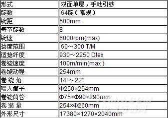 本機以滌綸、錦綸、丙綸等為原料,用于輪胎簾子布、傳動帶、輸送帶、安全帶、襯布等所用工業(yè)絲的加捻,也可用于魚網(wǎng)線的初捻工序。