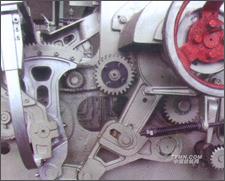六連桿引緯機(jī)構(gòu),配合短筘座腳,劍頭進(jìn)出速度加快,減少經(jīng)紗斷頭率。