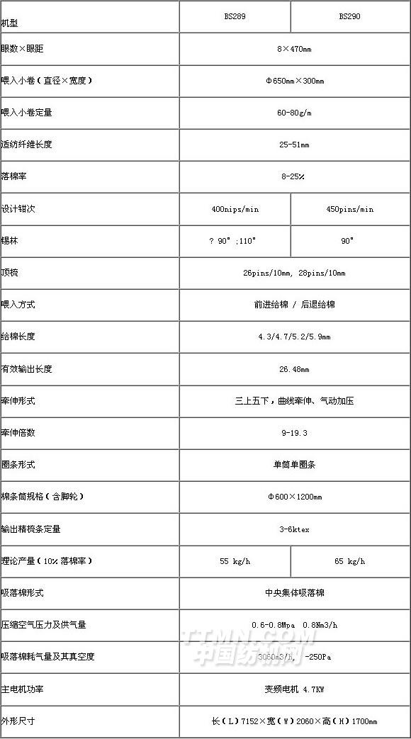 BS289/BS290型精梳機