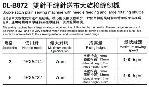 雙針平縫針送布大旋梭縫紉機 DL-B872