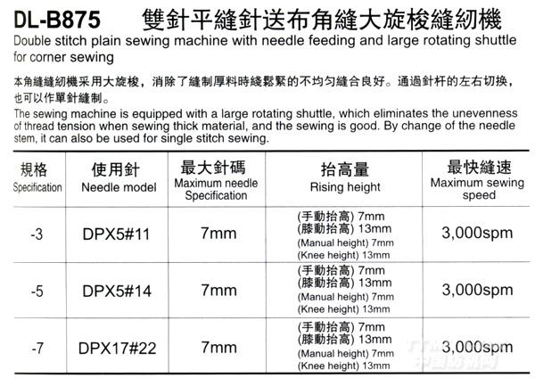 雙針平縫針送布角縫大旋梭縫紉機 DL-B875