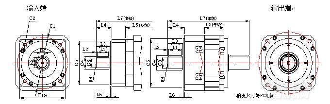 特點(diǎn): 雙軸、輸入輸出均為軸連接,減速機(jī)為方型,法蘭連接,