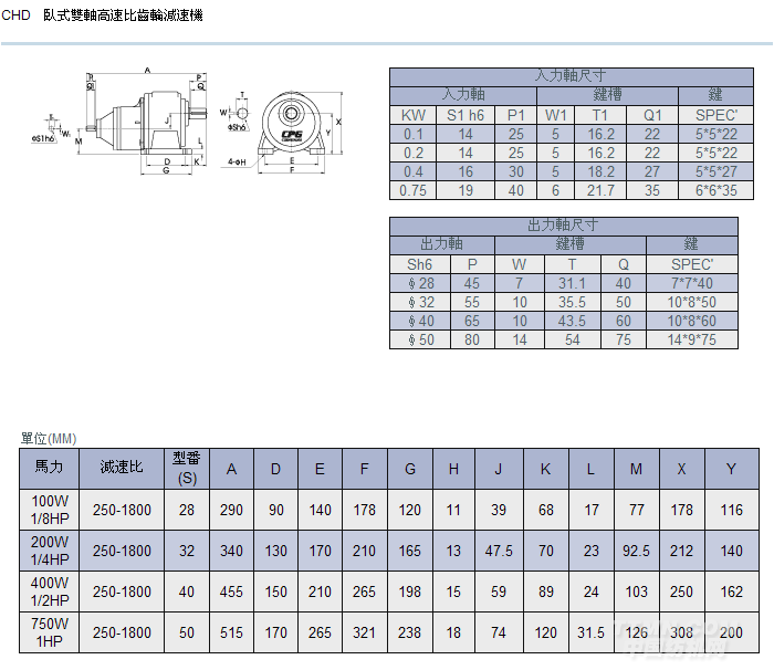 臥式高速比雙軸齒輪減速機(jī)詳細(xì)參數(shù):