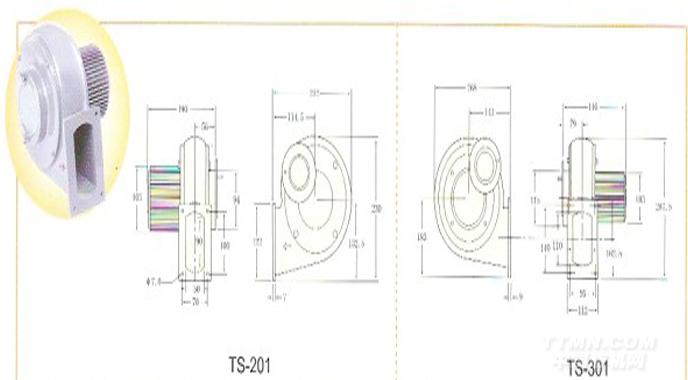 TS201-405鼓風(fēng)機(jī)特性說明: 一般用于塑膠材料片材的擠出、吹塑等相關(guān)機(jī)械設(shè)備上的抽排風(fēng),采用鋁合金重力壓鑄外殼,配合離心葉輪及優(yōu)化參數(shù)設(shè)計(jì),使各風(fēng)壓及風(fēng)流量達(dá)到所配置的性能最優(yōu),以利使用壽命能完全配合所設(shè)計(jì)的8---10年! TS系列說明:名稱 出口徑 出力 頻率 電壓 滿載電流 最大靜壓 最大風(fēng)量 噪音 重量