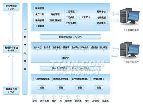 應(yīng)用自動(dòng)控制技術(shù)和計(jì)算機(jī)網(wǎng)絡(luò)信息技術(shù),在企業(yè)內(nèi)部建立統(tǒng)一管理的共享數(shù)據(jù)庫(kù)和高質(zhì)量高效率的企業(yè)在線監(jiān)控管理信息網(wǎng),通過技術(shù)創(chuàng)新、系統(tǒng)集成、資源優(yōu)化,實(shí)現(xiàn)了印染企業(yè)生產(chǎn)經(jīng)營(yíng)在線監(jiān)控和在線管理的一體化操作,最大限度提高企業(yè)的生產(chǎn)效率、經(jīng)濟(jì)效益和社會(huì)效益。