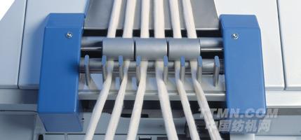 特呂茨勒將可靠的4上3下牽伸系統(tǒng)做進(jìn)一步的改進(jìn),增加壓力棒。第四根皮輥確保牽伸系統(tǒng)出條端的條子無位移偏差。主牽伸區(qū)的可調(diào)節(jié)壓力棒確保即使短纖維也被控制和引導(dǎo)。與之前的并條機(jī)相比,有效牽伸寬度增加了15mm,可改善加工高蓬松度合成纖維時(shí)的運(yùn)行性能。