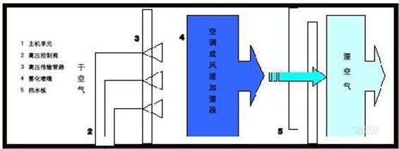 CHF....系列高壓微霧加濕、降溫系統(tǒng)可以用于中央空調(diào)或風(fēng)道的加濕段。如圖所示,將霧化噴嘴安裝與加濕段內(nèi),加濕系統(tǒng)所產(chǎn)生的水霧在加濕段中的汽化效率取決于送風(fēng)的溫度、濕度和風(fēng)速,未汽化的霧滴將被擋水板從送風(fēng)中分離,并聚集在接水盤中排入下水管道。
