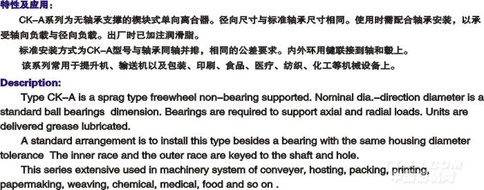 您所在的位置:紡機網(wǎng) >> 咸陽超越離合器有限公司 >> 單項離合器系列CK-A