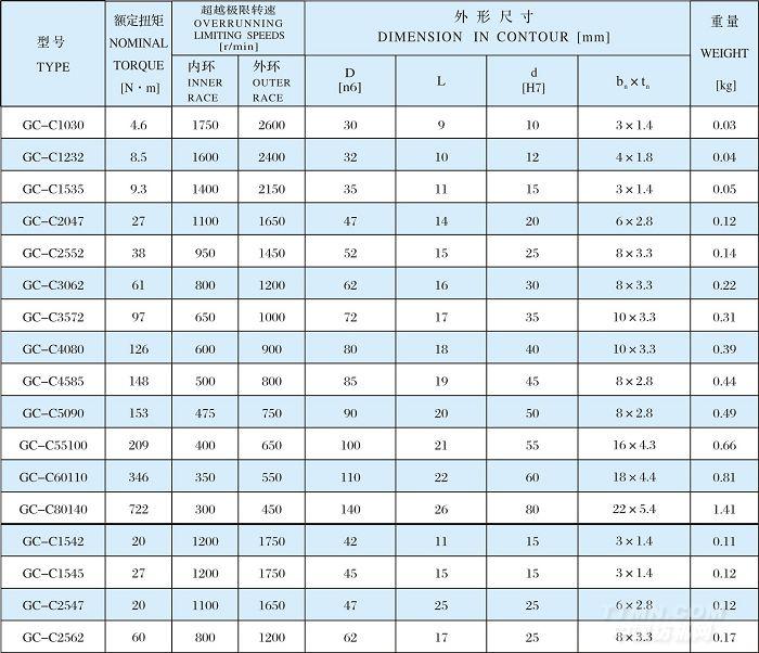 單項(xiàng)離合器系列GC-C