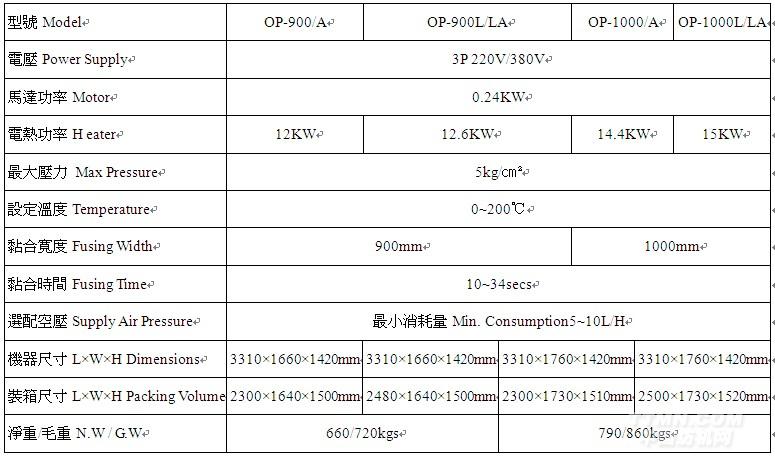 OP-900/900A/900L/900LA OP-1000/1000A/1000L/1000LA連續(xù)式黏合機(jī)