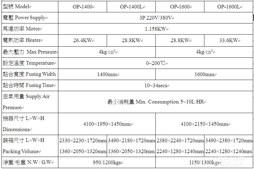 OP-1400/1400L/1600/1600L連續(xù)式黏合機(jī)