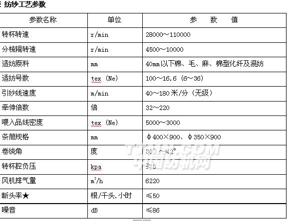 機(jī)器可紡100~16 tex (6~36Ne)的紗。
