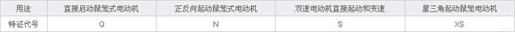 表2 操作電動(dòng)機(jī)的用途特征代號(hào)