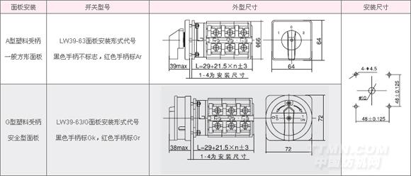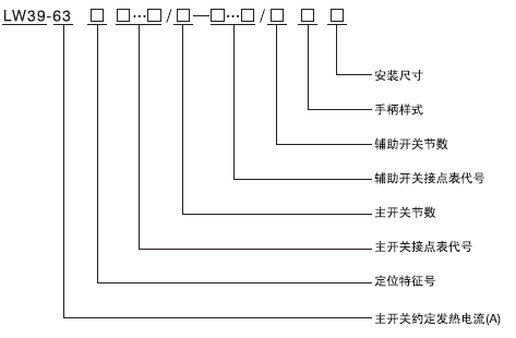 (2)“1-4mm”的安裝尺寸,可以按照客戶要求,定制任何按長(zhǎng)尺寸的轉(zhuǎn)換開關(guān)。客戶要求的安裝尺寸可以標(biāo)志在開關(guān)型號(hào)的手柄樣式后面。如采用G型安全型手柄、安裝尺寸為40mm的63A轉(zhuǎn)換開關(guān),型號(hào)為:LW39-63□□…□/□GK40