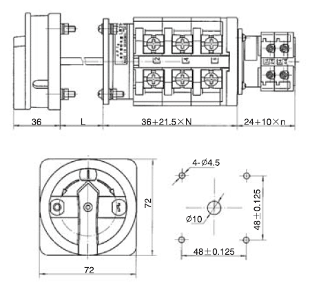 LW39-16系列轉(zhuǎn)換開關(guān)外型尺寸和安裝尺寸
