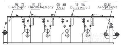 2、套印機組、用氣動壓印,氣動頂花棍??v向?qū)ㄎ硬钏贆C鉤,刮墨刀,刀向手動調(diào)節(jié)。