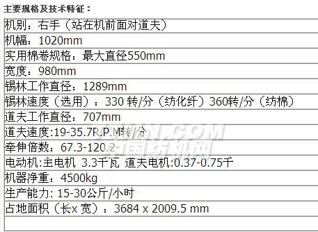 本機(jī)的前道工序是開清棉聯(lián)合機(jī),后道工序是并條機(jī),主要用于加工棉纖維和化學(xué)纖維,將前道工序送來的棉(化纖)卷或由棉箱供給的棉(化纖)層進(jìn)行開松分梳除雜,使所有呈卷曲,塊狀的棉團(tuán)成為基本伸直的單纖維狀態(tài),并在此過程中,除掉清花工序遺留下來的破籽,雜質(zhì)和短絨,然后集束成一定規(guī)格的棉條,儲(chǔ)存于條筒內(nèi),供并條工序使用.
