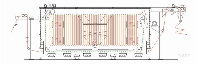 1、織物在汽蒸過(guò)程中全松弛,無(wú)張力,在自由狀態(tài)下完成汽蒸固色工藝。