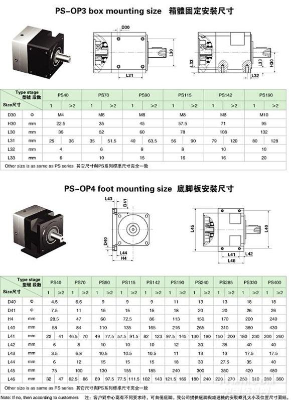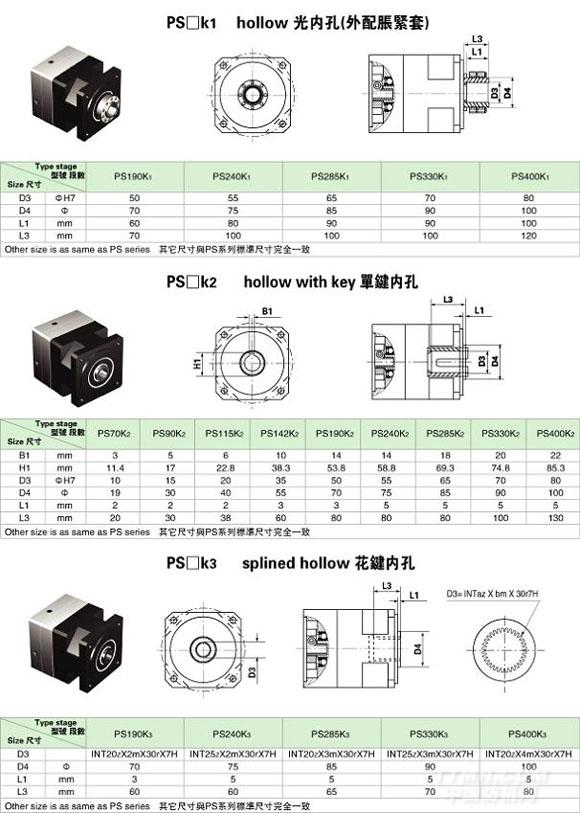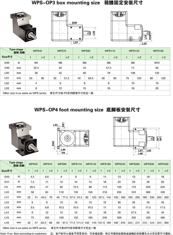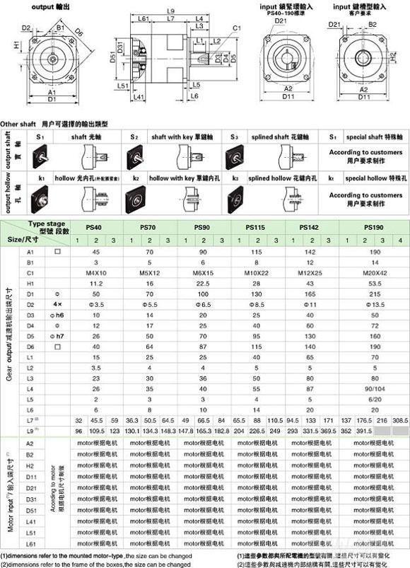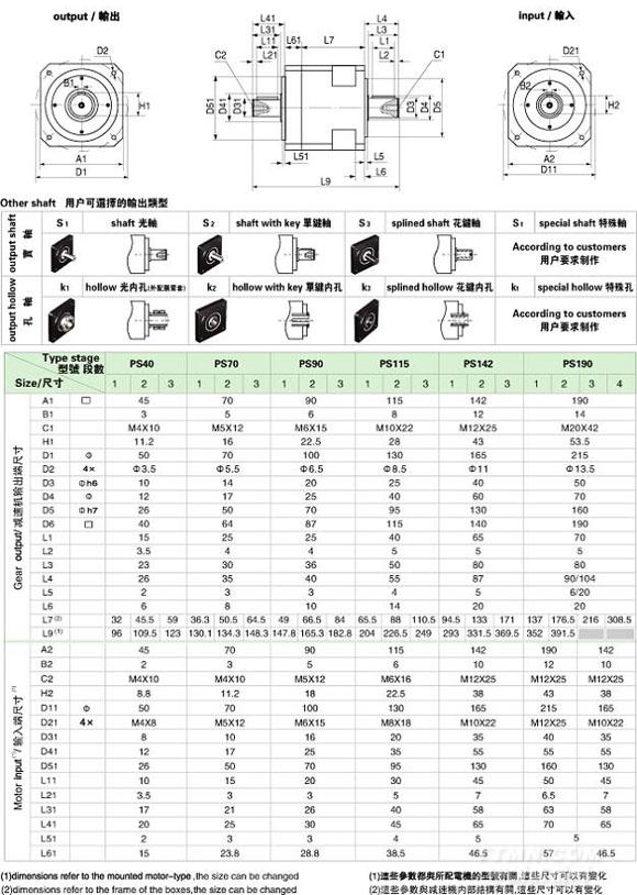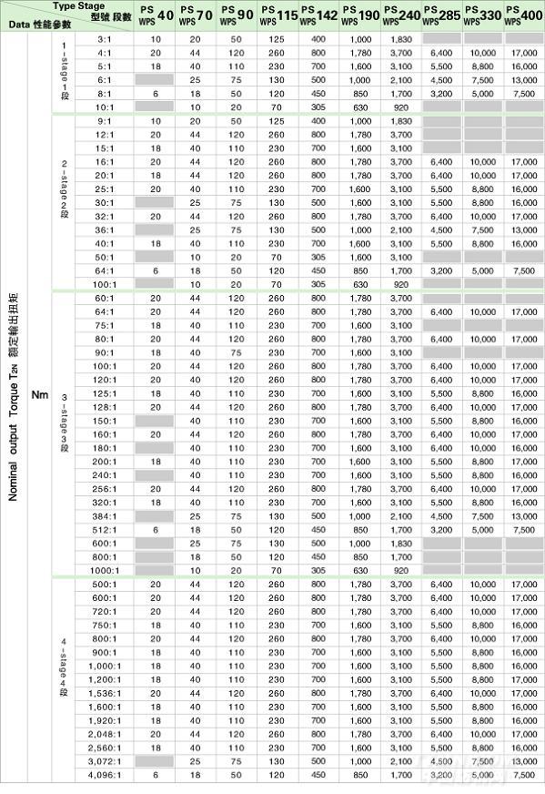 PS/WPS 系列精密行星減速機(jī)技術(shù)參數(shù)