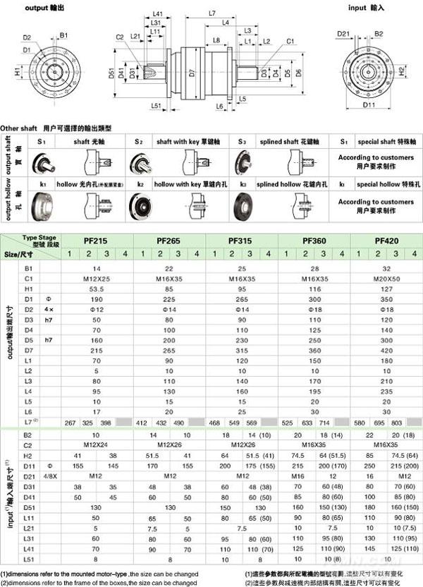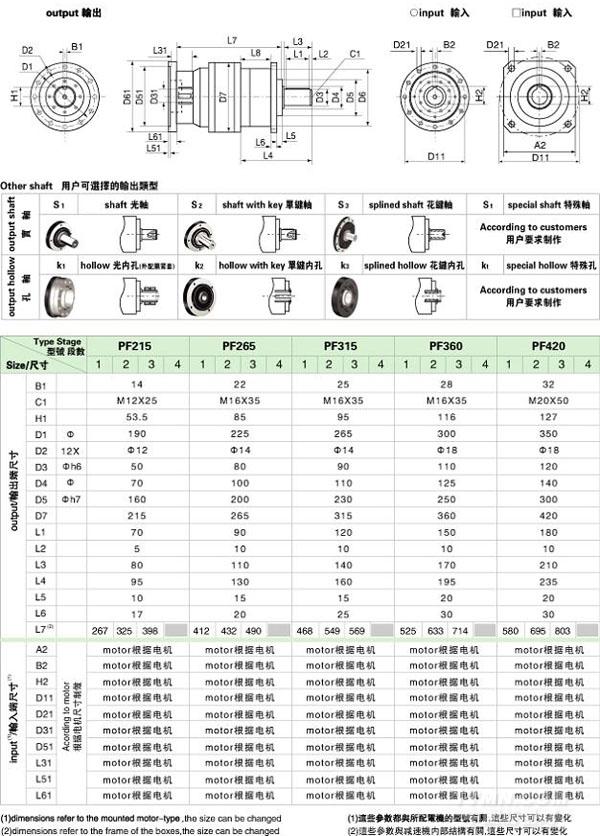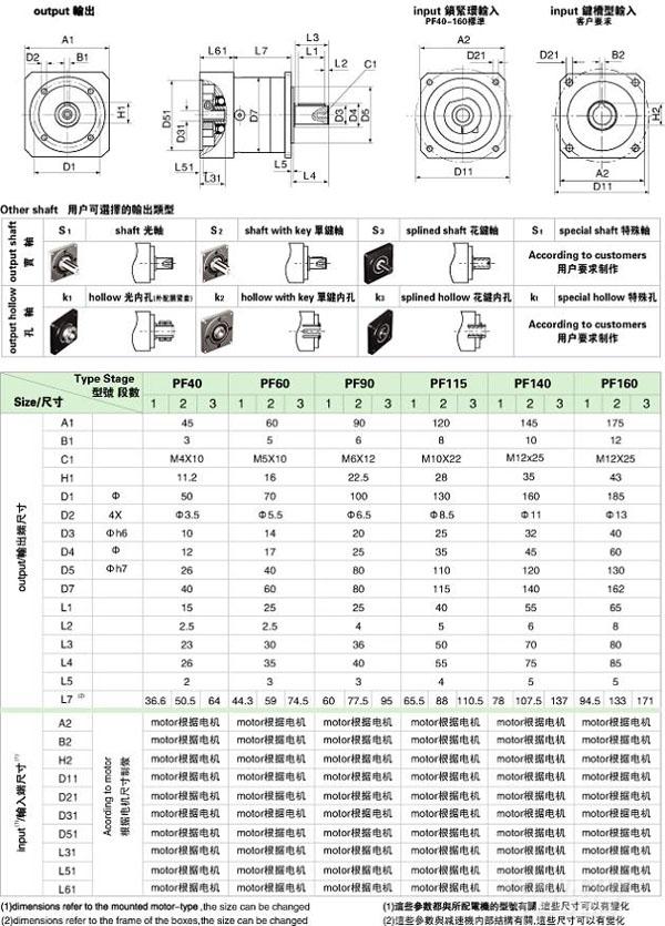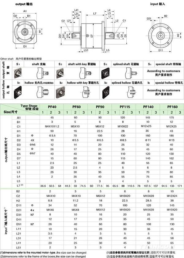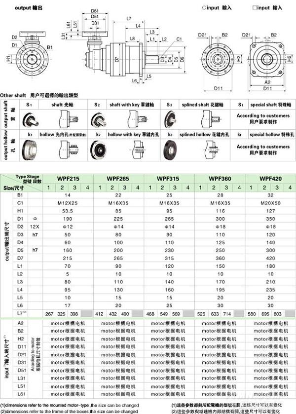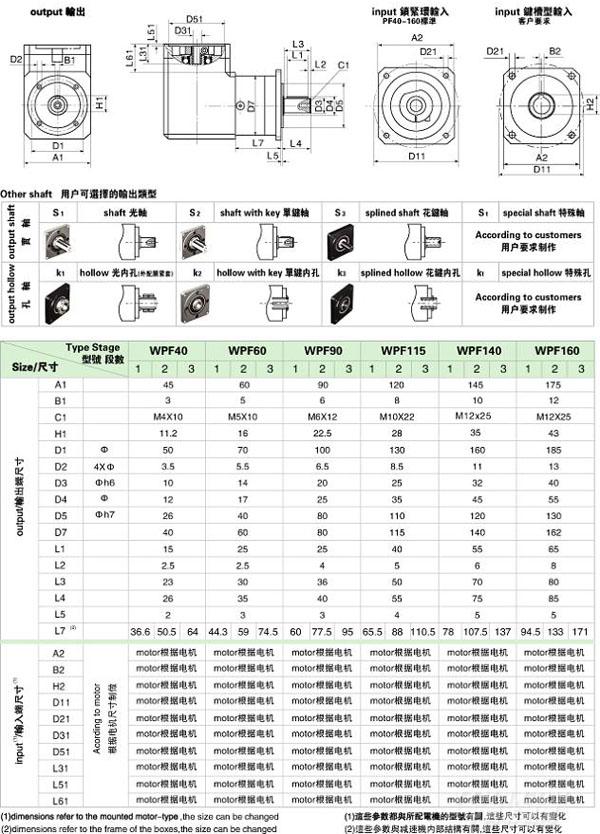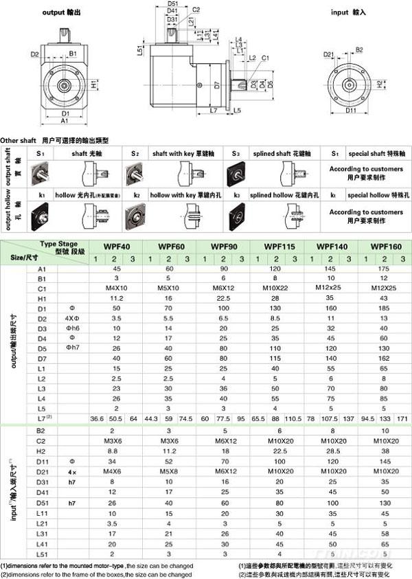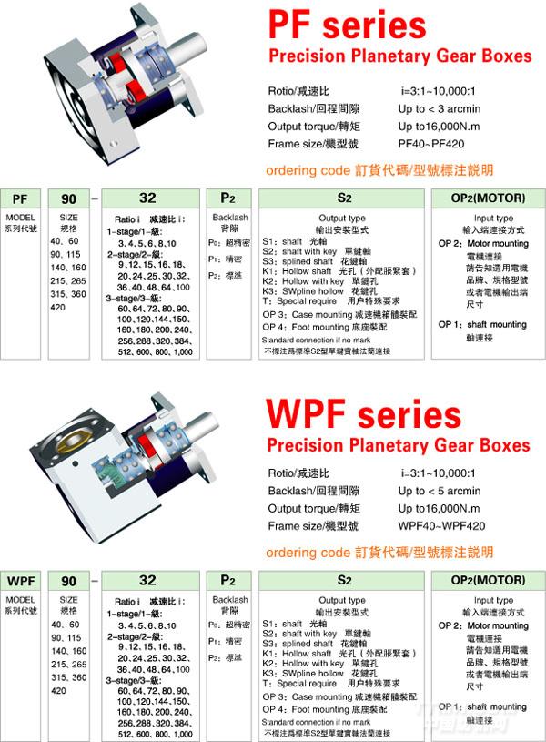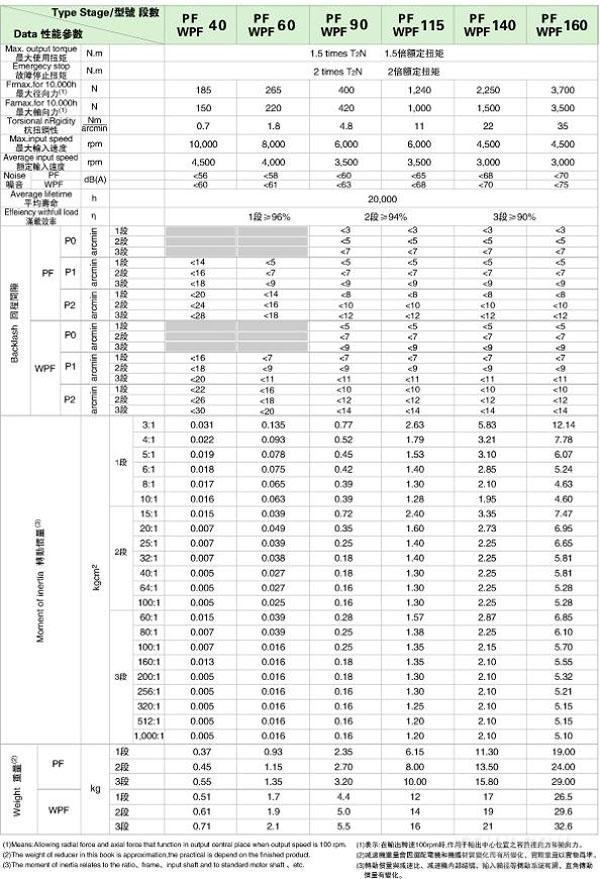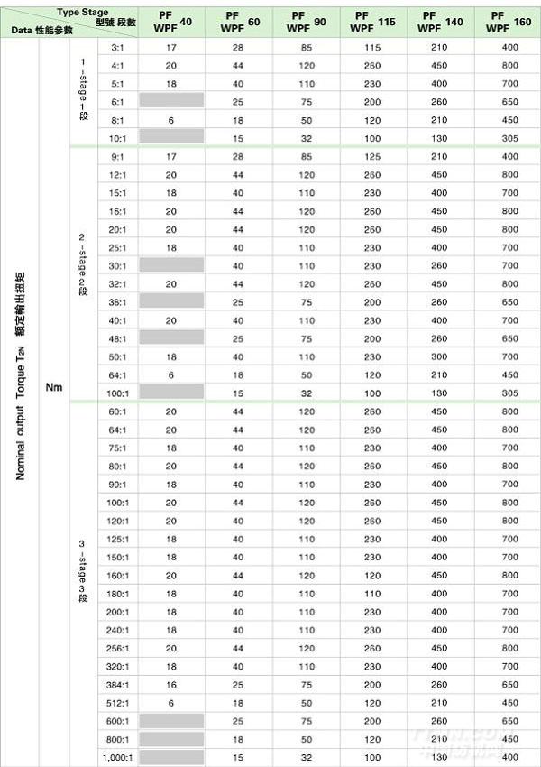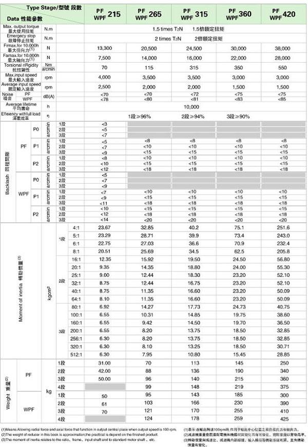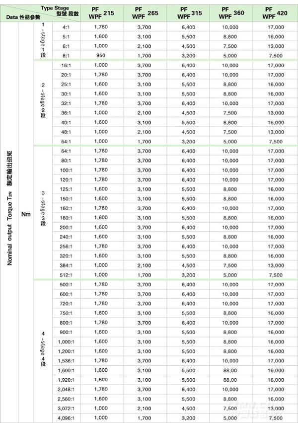 PF/WPF 系列精密行星減速機(jī)技術(shù)參數(shù)