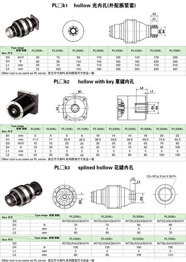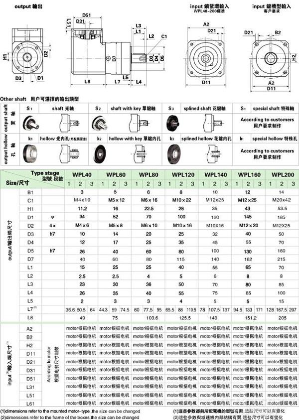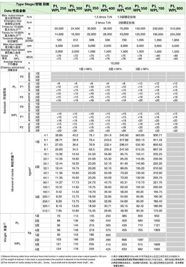 PL/WPL 系列精密行星減速機(jī)技術(shù)參數(shù)