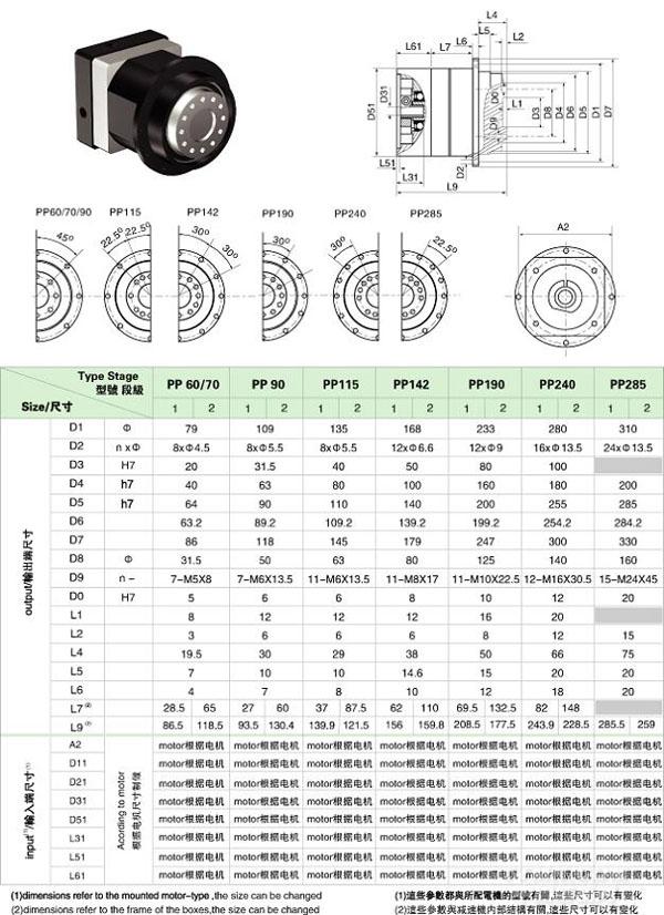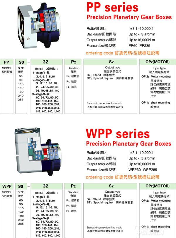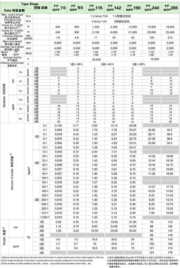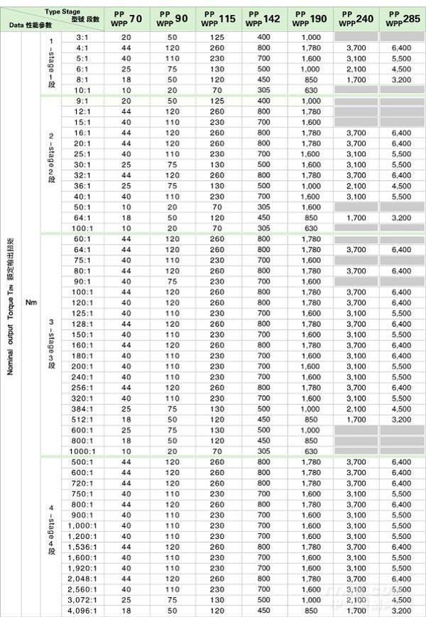 PP/WPP 系列精密行星減速機(jī)技術(shù)參數(shù)