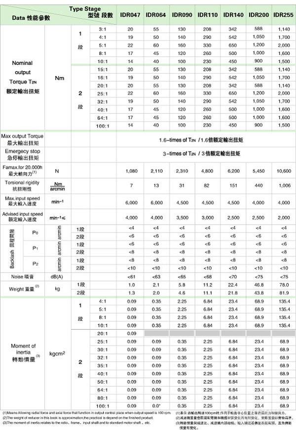 IDR 系列精密行星減速機(jī)技術(shù)參數(shù)