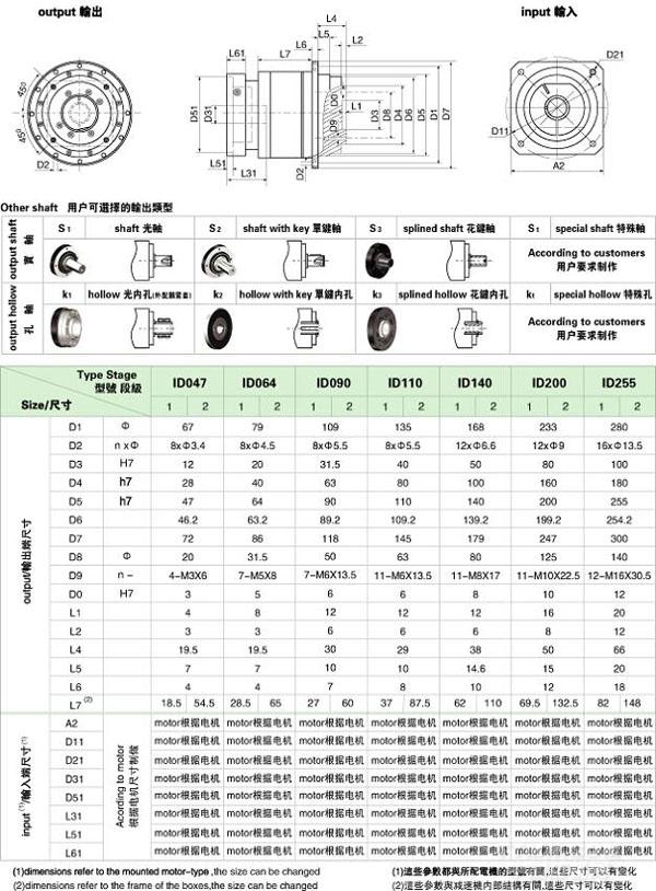 ID 系列精密行星減速機(jī)技術(shù)參數(shù)