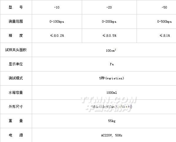用于緊密織物,如帆布、油布、帳篷布,苫布,非織造布及防雨服裝布,涂層織物等抗?jié)B水性能測(cè)試。