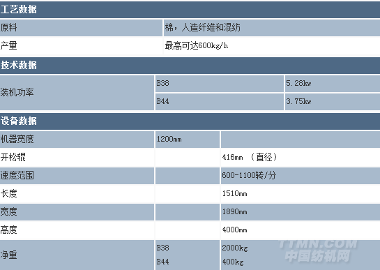 • 高效開棉機(jī),直接放置在超級(jí)抓棉混棉機(jī)后,具有很高的棉叢產(chǎn)出。