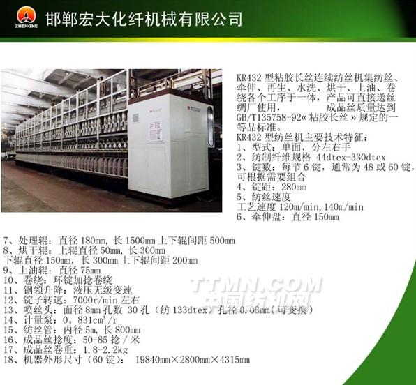 您所在的位置:紡機網(wǎng) >> 邯鄲紡織機械有限公司(邯鄲宏大化纖機械有限公司) >> KR/HD432型粘膠長絲連續(xù)紡絲機