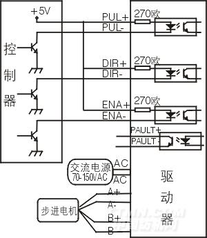 脈沖控制信號:脈沖上升沿有效;PUL-高電平時4-5V,低電平時0-0.5V。為了可靠響應(yīng)脈沖信號,脈沖寬度應(yīng)大于1.6μs。如采用+12V或+24V時需串電阻。