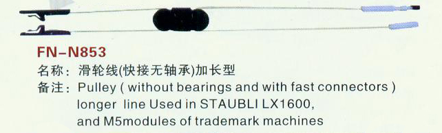 您所在的位置:紡機網(wǎng) >> 萬事達紡配門市部 >> FN-N853 滑輪線(快接帶軸承)加長型