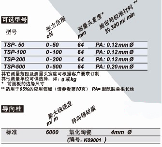 TSP:配有適于高速紗線,纖維張力測量的陶瓷導線柱的張力傳感器